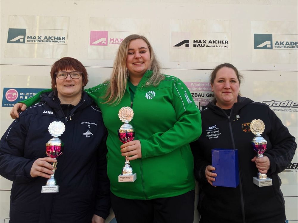 Bereits in ihrem ersten Durchgang setzte sie die Bestmarke von 87,18 Metern auf die Weitenbahn während bei Birgit Wagner der beste Schuss bei 82,53 Metern stehen blieb. Mit genau acht Zentimeter verwies sie damit Sabrina Miels vom EC Passau Neustift mit 82,45 Metern auf den dritten Platz. In der Altersklasse Ü 50 landete „Altmeister“ Hermann List vom EC Arnstorf wie im Vorjahr auf den undankbaren vierten Rang mit einer Weite von 106,56 Metern. Die drei Podestplätze erkämpften sich Franz Ebner vom EV Poschetsried 116,21, Michael Zitzelsberger EV Fischerdorf 113,03 und Christoph Neugirg 108,13 vom SV Unterneukirchen. Eine gute Vorstellung gab Thomas Schmuderer vom ESV Mitterskirchen in der Herren C Klasse. Mit 98,89 Metern landete er im Feld der 17 Starter auf den siebten Rang. Bayerischer Meister wurde Reinhold Bayerlein vom TSV Friedenfels 114,90 Meter vor Jannik Puruker 107,57 VER Selb und Christian Miefanger 106,52 vom FC Altrandsberg. (gh)