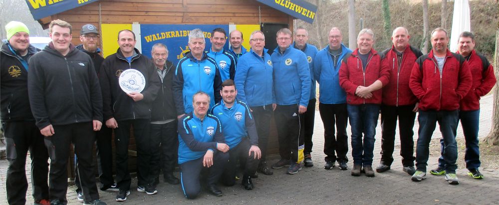 Die vier Aufsteiger in die Bezirksoberliga – von links der EC Prienbach mit den Schützen Noel und Thomas Sabo, Roman Asbeck, Werner Sachs und Otto Meisetschläger, der ESV Wang, die DJK-SG Ramsau sowie der FC Egglham mit den Schützen Gerhard Brunnthaler, Willi Gabriel, Franz Sager und Manfred Zitzelsperger.