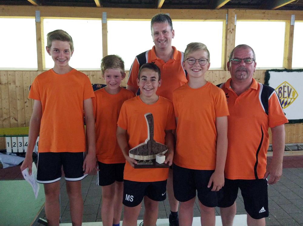 Einmal mehr glänzte der U 14 Nachwuchs des ESC Rattenbach bei einer überregionalen Entscheidung auf Sommerbahnen. Nach einem sehr starken Auftritt in der Vorrundengruppe mit Platz eins bei 8:0 Punkten und der überragenden Stocknote von 4,38 schafften Marco Straubinger, Martin und Florian Kreuzeder sowie Johannes Leibinger eindrucksvoll die Teilnahme an den Finalspielen. Im Spiel um Platz drei besiegten sie überlegen den SC Ittling mit 30:0. Bayerischer Meister wurde in der Halle von Plattling der EC Lampoding mit einem 18:8 über den ESV Wang. Erfolgreich waren bereits eine Woche zuvor die beiden Schützen Marco Straubinger und Florian Kreuzeder bei Talentsichtung des Deutschen Eisstockverbandes. Mit sehr starken Leitungen eroberte sich die beiden Nachwuchsschützen die Fahrkarte zum Euro Grand Prix in Klagenfurt. So belegte im Feld der 42 Teilnehmer Marco Straubinger mit 458 Punkten den dritten Platz und Florian Kreuzeder mit 431 Punkten den sechsten Platz. (hm)