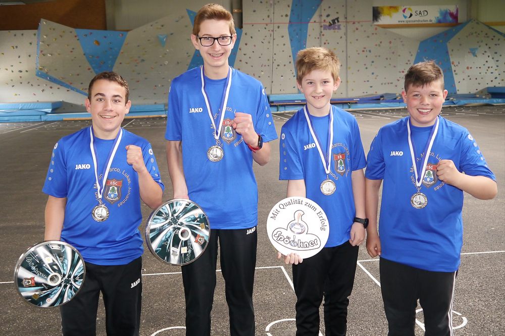 Fototext Hahn: Schafften den Aufstieg zur Bayerischen Meisterschaft mit Rang zwei bei der Bezirksmeisterschaft: der ESC Rattenbach mit Marco Straubinger, Florian Kreuzeder, Martin Kreuzeder und Lukas Hanseder. Beim ESC Lampoding spielten Hansi Obermayer, Florian Schubeck, Anna Maria Drechsler und Paul Lämmlein.