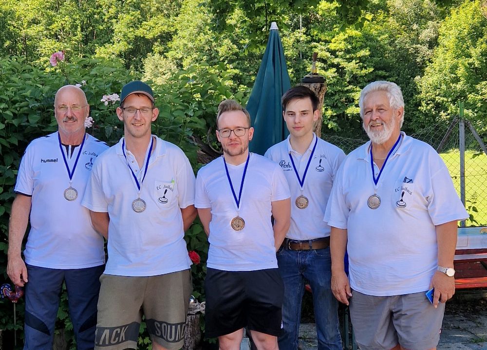 Mit einer starken Vorstellung haben sich die Stockschützen des EC Julbach bei der entscheidenden Rückrunde in der Bezirksoberliga noch vom neunten auf den dritten Gesamtrang vorgearbeitet. Von links: Arno Finger, Christoph Andorfer, Fabian Danzer, Sandro Irmgartinger und Karl Heinz Andorfer