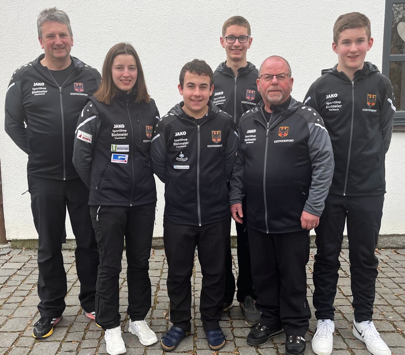Auf dem Bild das Team aus dem Stocksportkreis Rottal Inn das zur EM und WM fährt: von links Christoph Kreuzeder, Anna Hinteraicher, Marco Straubinger, Florian Kreuzeder, Josef Straubinger und Martin Kreuzeder.