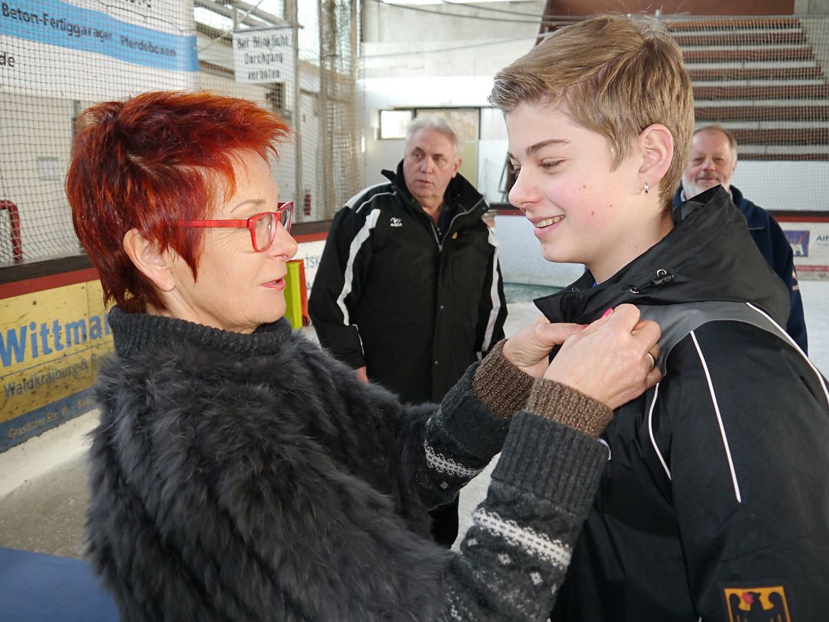 Zum bayerischen Meistertitel gratulierte Schirmherrin Reserl Sem Stefan Empl vom SV Gumpersdorf. Mit auf dem Bild Eduard Schmidhuber und Ernst Hecht.