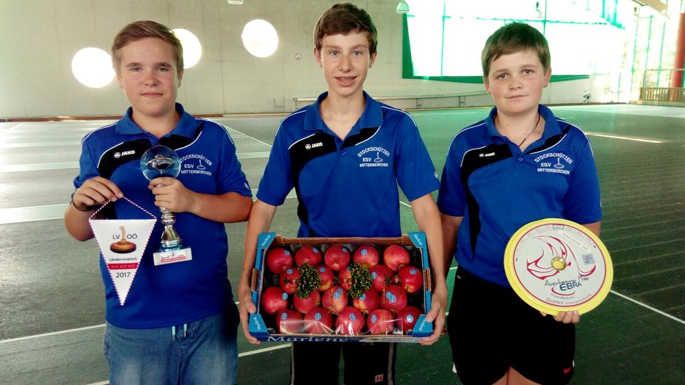 In der Stocksporthalle von Marchtrenk kämpfte der U 14 Nachwuchs um den Sieg. Einmal mehr beherrschte der TSV Niederviehbach das Geschehen und gewann mit 12:0 Punkten vor dem ESV Mitterskirchen (10:2 Punkte). Über den zweiten Platz für den ESV Mitterskirchen jubelten Lorenz Zanklmaier, Mathias Hahn und Max Auerhammer. 3. Union Neustift 8:4, 4. FC Penzing, 5. Auswahl Südtirol. 6. Union Sarleinsbach alle 4:8, 7. JESZ Erpfendorf 0:12 Punkte.