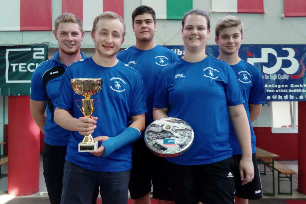 Gold im Mannschaftsspiel - von links mit Noel Sabo, Stefan Eder, Kurt Burmberger, Ariana Schindlbeck und Steffen Melzer.