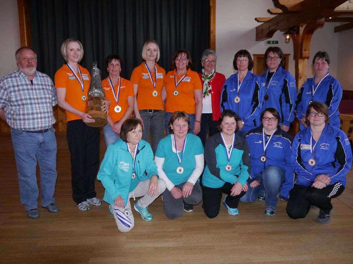 In Mitterskirchen kämpften acht Damen-Teams um die begehrte Trophäe. Einen Start-Ziel- Sieg landeten dabei die Damen des TSV Massing mit 14:0 Punkten und der überragenden Stocknote von 6,85 mit Conny Hahn, Elfriede Leitner, Jacqueline Ritter und Marie Luise Spielbauer und konnten somit ihren Titel verteidigen. Spannung herrschte dagegen beim Kampf um die weiteren Podestplätze wobei bei drei punktgleichen Teams die Stocknote über die Medaillenplätze entschied. Platz zwei ging an den EC Irging Simbach Note 1,43 mit Christina und Hildegard Spielbauer, Maria Auer, Marion Neubauer und Christine Brandstetter, vor dem ESV Mitterskirchen Note 1,24 mit Monika Zanklmaier, Marianne Hahn, Ulli Waschlinger, Birgit Wagner und Barbara Wimberger sowie dem DJK-SW Wittibreut Note 0,87 alle 8:6 Punkte. Auf den weiteren Plätzen landeten: 5. RSC Diepoltskirchen 7:7, 6. Spielgemeinschaft Dietersburg-Johanniskirchen 5:9, 7. EC Prienbach, 8. SG Rattenbach-Reicheneibach 2:12 Punkte.