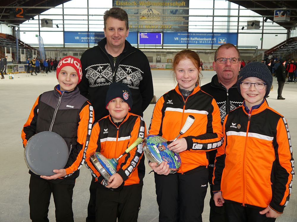Knapp verpasst hatte dagegen der U 14 Nachwuchs des ESC Rattenbach die Teilnahme an den Halbfinalspielen. Mit 7:7 Punkten belegten Florian Kreuzeder, Marco Straubinger, Julia und Johannes Leibinger den fünften Platz in der Gruppenphase hinter dem punktgleichen Trio EC Furth, SV Kay und EC Hauzenberg, jeweils 10:4 Punkte und dem FC Penzing 8:6 Punkte. Trotzdem darf der fünfte Platz bei einer Deutschen Meisterschaft als schöner Erfolg zu den Akten gelegt werden. Deutscher Meister wurde der SV Kay mit einem 27:5 über den FC Penzing.